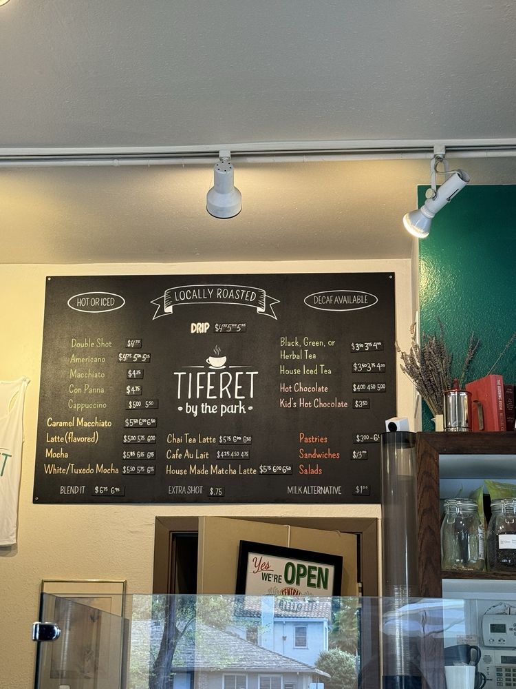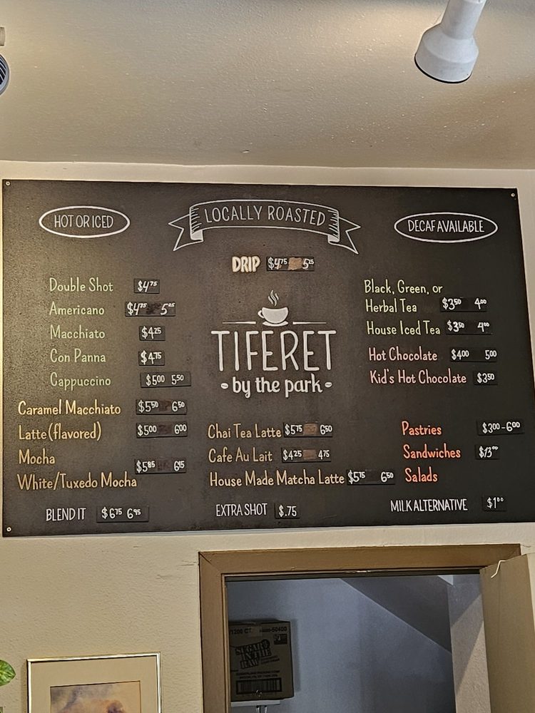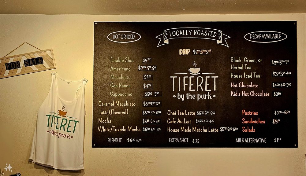 Located in Sacramento, CA, Tiferet by the Park offers a delightful menu of breakfast and brunch options, with a focus on sandwiches crafted by Estelle's Patisserie. The menu features a variety of espresso options, from Americano to Caramel Macchiato, as well as delicious bites like baked goods and sandwiches. For non-coffee drinkers, there are also options like Children's Hot Chocolate and Vanilla Steamer. The restaurant provides a range of utilities, including takeout, reservations, delivery, outdoor seating, and catering services. With a welcoming and accessible atmosphere, Tiferet by the Park is a great spot for groups, working remotely, or enjoying a casual meal. The gender-neutral restrooms and eco-friendly practices, such as providing reusable tableware and allowing customers to bring their own containers, add to the overall experience. Overall, Tiferet by the Park is a charming and inclusive dining destination worth trying.